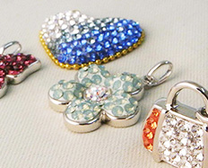 | ダイヤモンドにも劣らない輝きのスワロフスキークリスタルを使用したアクセサリーメイキング講座です。あの高級アクセサリーをとても簡単にお作りいただけます。キラキラがカワイイアイテムが作れます。 |