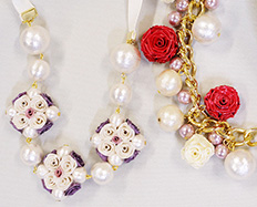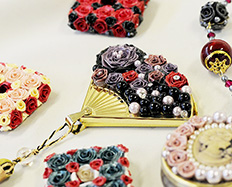 | 特殊な色粘土で土台を作って、その上に石を敷き詰めていく、ジュエルアクセサリーです。煌びやかなスワロフスキーと合わせたハイクオリティーなクラフトです。 |